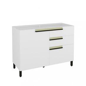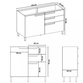 Caracteristicas: 2 Portas, sendo uma porta temperos 3 Gavetas Acabamento pintura UV Corredicas telescopicas Dobradicas caneco 35MM com amortecimento Estrutura em MDP 15mm Fixacao com minifix Puxadores em madeira Pes c/ sapata regulavel plastica