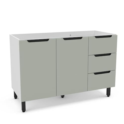 Características: Estrutura MDP 2 Portas 3 Gavetas 1 Prateleira Corrediças telescópicas Acabamento FF Pintura UV Gavetas suporta até 3kg Prateleira Suporta até 5kg distribuídos Não acompanha Tampo ou pia