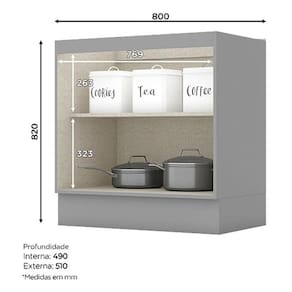 Balcão 2 Portas 80 cm Nova York Cinza – Henn