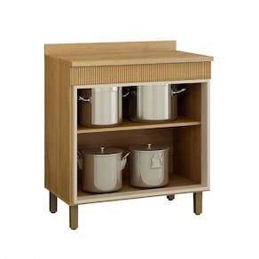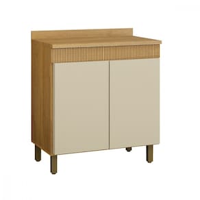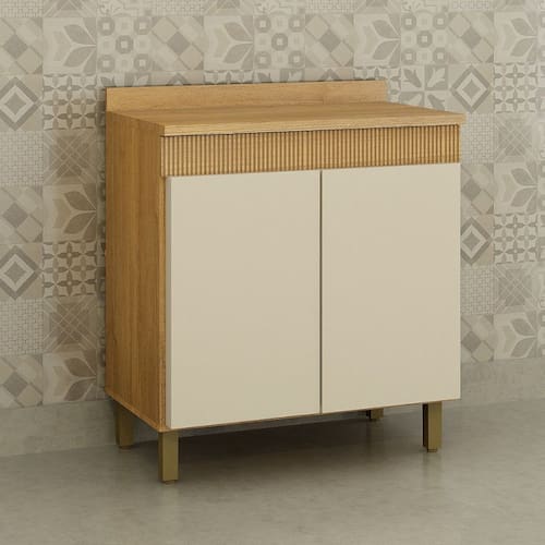 Características: Estrutura MDF/MDP Moldura frontal fresada. Pés em ABS com regulagem. Tampo em 25mm. 2 Portas Prateleira Corrediça Telescópicas Puxador cava nas gavetas em 45° Dobradiça metálica de pressão