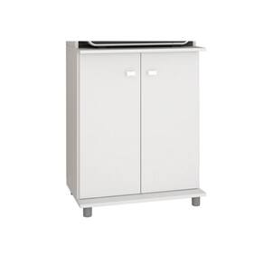Características do Produto Material da Estrutura: MDP 15 mm. Acabamento: Pintura BP. Escala de Brilho: Brilhante. Quantidade de Portas: 2 Portas. Tipo de Porta: Convencional. Tipo de Puxador: Plástico. Possui Prateleiras: Sim. Tipo de Pé: Pés de plástico. Quantidade de Prateleiras: 1 Prateleira. Possui Nichos: Sim. Quantidade de Nichos: 1 Nicho. Diferenciais: - Design moderno. - Produto versátil. - Amplo espaço interno. Sistema de Montagem: Minifix / Cavilhas / Parafusos. Manual de Montagem: Sim. Complexidade da Montagem: Média. Volumes: 1 Volume. Montagem: Recomendamos que seja feita por um . Recomendação de Limpeza: Utilize pano levemente úmido.