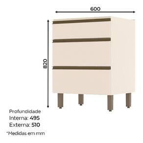 Balcão 3 Gavetas 60 cm Connect Off White Henn