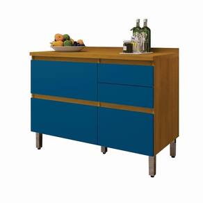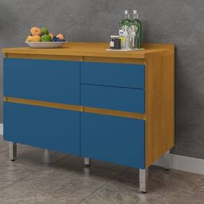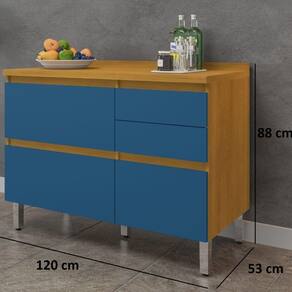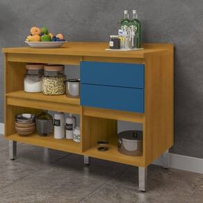 Balcão 3 Porta 2 Gaveta Pilar Cinamomo e Azul Turquesa
