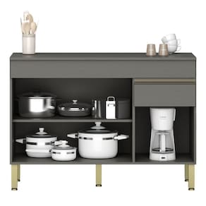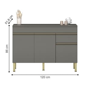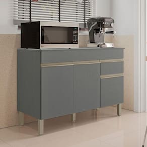 O Balcão possui 3 portas e 1 gaveta e 1 tampo incluso, destaca-se por sua praticidade e eficiência de uso, podendo ser utilizada como complemento de cozinha.
