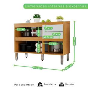Balcão 3 Portas 2 Gavetas Pilar, uma verdadeira joia em 100% MDF. Este móvel não é apenas uma adição à sua casa, é uma declaração de estilo e qualidade que promete transformar seu ambiente. As gavetas deste balcão foram cuidadosamente projetadas para resistir ao desgaste do uso diário, equipadas com corrediças telescópicas que proporcionam suavidade e durabilidade incomparáveis. Com pés reguláveis para se adaptar perfeitamente ao seu espaço, este balcão é a definição de estabilidade e beleza combinadas. o Balcão Pilar oferece uma prateleira estrategicamente posicionada para aprimorar a organização do seu espaço. Além disso, a gaveta com divisor de talheres proporciona uma solução prática para manter sua cozinha impecavelmente organizada. Suporta Granito: Não Acabamento da Prateleira: Pintura UV Escala de Brilho da Prateleira: Semi-Brilho Acabamento da Gaveta: Pintura UV Acabamento da Porta: Pintura UV Escala de Brilho da Porta: Semi-Brilho Acabamento: Pintura UV Acompanha Tampo: Sim Altura dos Pés: 17 cm Ambiente Principal: Cozinha Balcão Acompanha Pia: Não Cesto para Frutas: Não Complexidade da Montagem: Alta: deve ser montado por um montador especializado Cor: Cinamomo / Branco Acetinado Cor do Produto: Cinamomo / Branco Acetinado Escala de Brilho: Semi-Brilho Gaveta com Chave: Não Itens Inclusos: 1 Balcão, manual de montagem e kit ferragem. Manual de Montagem e Instalação: https://product-hub-prd.madeiramadeira.com.br/902391/documents/58dc2889-1c4d-4cfe-bf35-9d41e7f5c5a185balcAo03portas02gavpilar.pdf Material da Dobradiça/Corrediça da Porta: Metálica Material da Gaveta: MDF Material da Porta: MDF Material da Prateleira: MDF Material do Tampo: MDF Material dos Pés: Polipropileno Medida do Tampo (L x C x E): 53 cm x 120 cm x 3 cm Necessita Montagem: Sim Origem do Produto: Nacional Peso: 49,15 kg Peso Máximo por Gaveta: 10 kg Peso Máximo por Prateleira: 20 kg Possui Pés: 05 Possui Portas: Sim Possui recorte para Cooktop: Não Recomendações de Uso, Manutenção e Limpeza: Limpe a superfície usando um pano úmido com a solução(75%água + 15%detergente neutro), torça para retirar o excesso e, em seguida, finalize com um pano limpo e seco. Sapatas Niveladoras: Sim Sistema de Montagem: Parafusos e cavilhas Suporta Até (kg): 70 kg Tipo de Corrediça da Gaveta: Telescópica Tipo de Dobradiça/Corrediça da Porta: 35 mm Tipo de Porta: Basculante Tipo de Puxador da Gaveta: Embutido Tipo de Puxador da Porta: Embutido