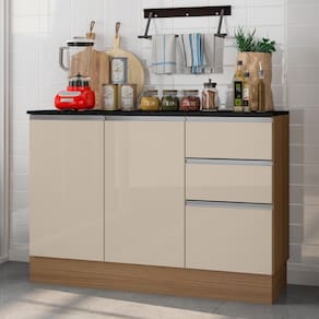 Balcão 3 Portas e 2 Gavetas com Tampo Paris Carvalho / Off White