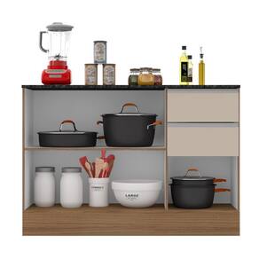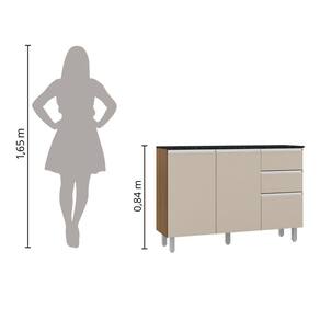 Balcão 3 Portas e 2 Gavetas com Tampo Paris Carvalho / Off White - Marrom