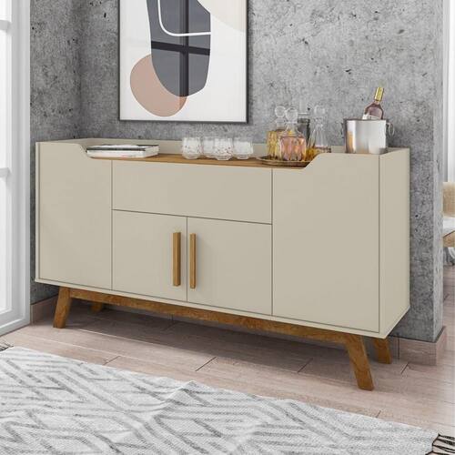 Com um design retrô, ele possui 1 gaveta, 4 portas e 2 prateleiras internas, ideal na organização de bebidas, taças, objetos de decoração e muito mais.