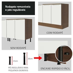 Se destaca por ser prático e a boa profundidade oferece espaço para organizar utensílios, louças e mantimentos.