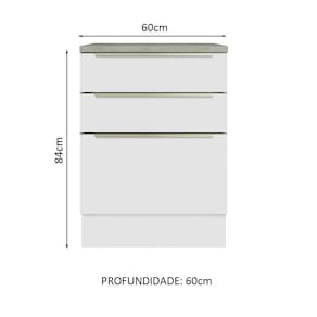 O Balcão de 60 cm com três gavetas da linha Lux da Madesa é ótimo para armazenar de forma organizada mantimentos, utensílios de cozinha e louças.