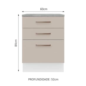 Este balcão de 60 cm da linha Agata da Madesa conta com três gavetas, sendo a última mais profunda. É perfeito para ampliar sua cozinha e organizar as louças e utensílios.
