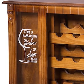 Se você é um apreciador de bons vinhos precisa conhecer o Balcão Adega em Madeira Maciça 1 Gaveta e Pés Luiz XV 5134 Genebra. Produzido totalmente em madeira maciça, possui um acabamento impecável e robustez para durar por longos anos. Neste balcão adega de vinhos você poderá expor até 12 garrafas, ele ainda conta com uma gaveta com corrediças telescópicas e um lindo acabamento entalhado na parte frontal, além do charme dos pés Luiz XV, ele possui um compartimento especial para guardar rolhas, sempre que abrir uma garrafa você poderá guardar a rolha no espaço que conta com um vidro transparente para exibi-las e com o passar do tempo sua adega de vinho de madeira ficará ainda mais linda e charmosa!
