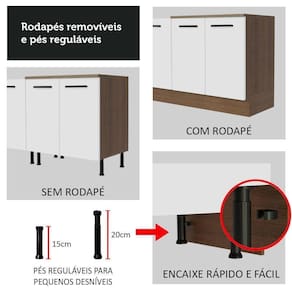 -Detalhes dos Pés: acompanha base fixa de ferro na cor bronze, com alta resistência;