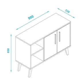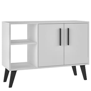 Quanto à funcionalidade e organização, o Balcão Buffet é composto por 2 portas com dobradiças metálicas e 2 prateleiras, uma interna e outra externa com amplo espaço para guardar as louças de jantar e objetos de decoração.
