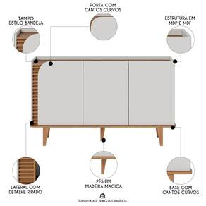 Encante-se com o Balcão Aparador Buffet 3 Portas 136m Madrid C05 Off White Matte/Freijó, da Mpozenato, uma combinação perfeita de design retrô e contemporâneo expressos em cada detalhe. Os pés de madeira maciça harmonizam facilmente com as linhas orgânicas, com o aplique ripado e com a porta de quina usinada, adicionado um conferem um visual único e sofisticado ao móvel. Já o tampo amadeirado, levemente recuado, cria a sensação de uma bandeja, agregando um charme especial ao buffet.