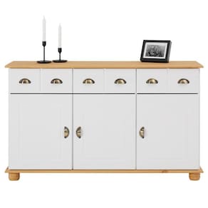 O Buffet Aparador de Sala em Madeira Maciça Colmar Branco Freijó combina charme clássico e funcionalidade em um design que transforma qualquer ambiente. Produzido em madeira maciça de pinus, com acabamento em Branco Freijó, ele traz um visual acolhedor e atemporal. São 3 portas com prateleiras internas espaçosas e 3 gavetas superiores com fundo em MDF, ideais para organizar louças, utensílios ou mantimentos com praticidade.