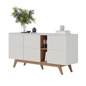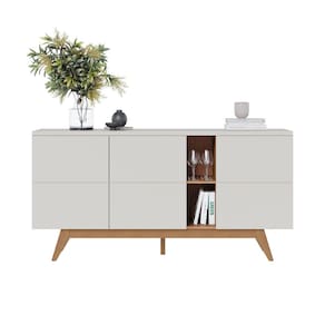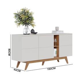 Com três portas com detalhes chanfrados e pintura P.U. com dobradiças metálicas, este aparador oferece um espaço interno amplo, ideal para guardar louças, talheres, toalhas e outros itens essenciais. Além disso, seus dois nichos abertos são perfeitos para exibir quadros ou qualquer outro item decorativo que adicione personalidade ao ambiente. Fabricado em MDP, um material de alta resistência e fácil manutenção, o Buffet Moon tem um design moderno e minimalista, que se destaca pelo acabamento natural da madeira e pela ausência de puxadores, utilizando o prático sistema de fecho toque, conferindo sofisticação à peça. Os pés retrô em madeira maciça garantem resistência e estabilidade, enquanto o móvel se adapta facilmente a diferentes ambientes, como sala de jantar, sala de estar ou hall de entrada. Se você busca um móvel prático, elegante e versátil, o Balcão Aparador Buffet Moon é a escolha certa!
