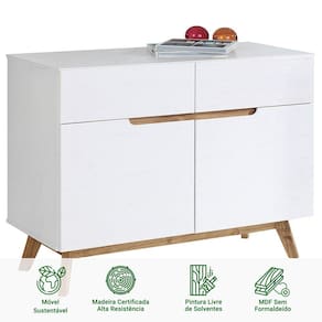Um Balcão extenso que vai proporcionar facilidade no seu dia a dia.Mais um produto irresistível da linha Tibor, com design o escandinavo é indispensável para seu ambiente. Em questão de móvel sofisticado a linha Tibor tem de sobra, seu design é um diferencial do produto e vai encantar os olhos de sua família. O Balcão Aparador em Pinus 02 Gavetas 02 Portas Tibor é caracterizado por seu minimalismo para a sua Sala de Estar, jantar ou até mesmo quarto. Como diferencial o balcão aparador possui 2 gavetas com amplo espaço para organizar seus objetos. O aparador possui pés cónicos, puxadores em cava, agregando simplicidade e beleza no produto. O Balcão Aparador Tibor é de Madeira Maciça reflorestada, mais resistente que MDF. Pensamos também na saúde de sua família utilizando pinturas livre de solventes e sem forlmaldeído.Confira já este produto incrível!Dimensões do ProdutoAltura: 84Largura: 98 cmProfundidade: 40 cmPeso: 28 KgMateriais e AcabamentoMaterial da Estrutura: Madeira MaciçaTipo da Madeira: PinusMaterial de Fundo: MDF CARBFundos das Gavetas: MDF CARBEscala de Brilho: FoscoAcabamento: FoscoMaterial dos Pés: Pinus MaciçoRecomendação de Limpeza: Utilize pano levemente úmidoCaracterísticas do ProdutoQuantidade de Prateleiras: 1Quantidade de Portas: 2Quantidade de Gavetas: 2Possui Portas: SimPossui Rodízio: NãoPossui Gavetas: SimEstilo: Escandinavo Tipos de Corrediça: PlásticaTipo de Puxador Gaveta: Cava Ambiente Principal: Sala de Estar, Sala de Jantar ou QuartoPrecisa de Montagem: SimSistema de Montagem: Minifix / Cavilhas / Parafusos.Complexidade da Montagem: MédioVolumes: 01Garantia do Fabricante: 12 mesesMontagem: Recomendamos que seja feita por um profissional.Manual de Montagem: SimDiferenciais:- Produto Versátil- Design Moderno/Rústico- Madeira Maciça- Mais Resistente que MDF- Móvel Sustentável- Madeira Certificada- Pintura Livre de Solventes- MDF Livre de Formaldeído- O conjunto não pode ficar exposto ao Sol ou Chuva.