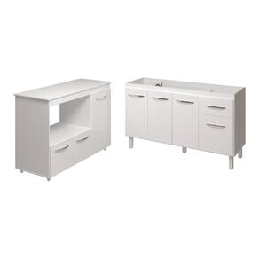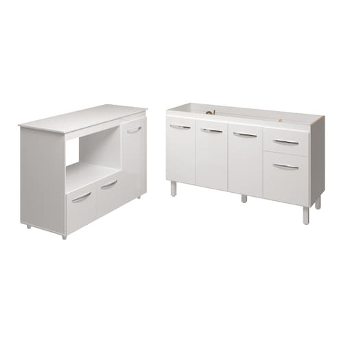 Balcão Armário Camila Cozinha Gabinete de Pia 140 cm e Balcão para Forno Elétrico e Microondas Lilian Branco