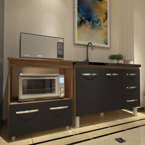 Transforme sua cozinha com o Kit Balcão Para Pia de 118 cm Bruna e Balcão Multiuso para Micro-ondas e Forno Elétrico Amanda!