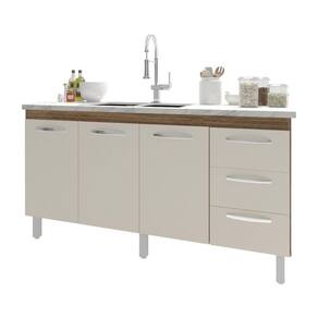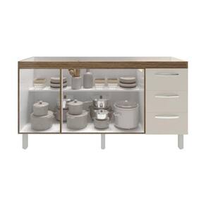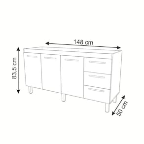 Balcão Armário Cozinha Gabinete Para Pia 148 Cm 3 Gavetas E 3 Portas Deise Savana Off White Está procurando um balcão de pia com a cara da sua cozinha? O Balcão Gabinete para Pia de 150 cm Deise foi feito pra você! Produzido em MDP, ele é bonito, elegante e vai dar aquele toque que faltava no seu ambiente! Características: Altura com pés: 83,5 cm Altura sem pés: 67 cm Largura: 148 cm (padrão para pia de 150 cm) Profundidade: 50 cm Material: MDP (madeira) Portas: 3 portas Gavetas: 3 gavetas Prateleiras: 1 prateleira Puxadores: 6 puxadores plásticos cromados Pés: 6 pés reguláveis de plástico Altura dos pés: 16,5 cm Regulagem dos pés: Somente para nivelamento (chega no máximo a 18 cm) Corrediças: Metálicas Indicações de uso: Cozinha