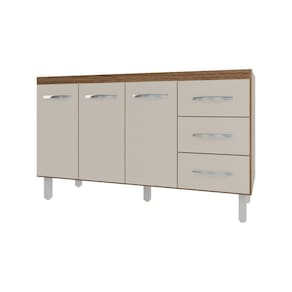 Balcão Armário Cozinha Gabinete Pia de 140 cm Carine com 3 Portas e 3 Gavetas Savana Off White - Marrom