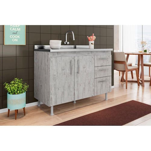 Características: Material da Estrutura: MDP Acabamento: Pintura UV Escala de Brilho: Fosco Possui 2 portas Possui 3 gavetas Dobradiças em aço Puxadores embutidos Pés em PVC Corrediças metálicas Design moderno Acompanha Tampo: Não