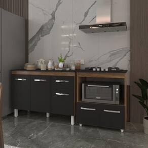 Balcão Armário Gabinete Aline 118 Cm Savana Preto Com Tampo Preto E Balcão Evelyn Para Cooktop 4 Bocas Savana Preto Este kit une funcionalidade e design para transformar sua cozinha! Conta com o balcão Aline de 120 cm com tampo, perfeito para organizar utensílios e preparar refeições, além do balcão Evelyn para cooktop de 4 bocas, garantindo uma instalação segura e harmoniosa. Com acabamento refinado, materiais de alta qualidade e um visual moderno, esse conjunto é a escolha ideal para quem busca praticidade sem abrir mão do estilo. Características do Balcão Aline: