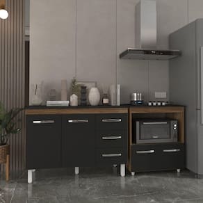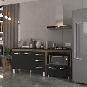 Balcão Armário Gabinete Bruna 118 Cm Savana Preto Com Tampo Preto E Balcão Evelyn Para Cooktop 4 Bocas Savana Preto Transforme sua cozinha com este kit prático e elegante! Composto pelo balcão Bruna de 120 cm com tampo, ideal para armazenamento e apoio no preparo de refeições, e pelo balcão Evelyn para cooktop de 4 bocas, que proporciona uma instalação segura e organizada. Seu design moderno, materiais resistentes e acabamento sofisticado garantem funcionalidade e beleza para um ambiente mais aconchegante e eficiente. Características do Balcão de Pia Bruna 118 cm: