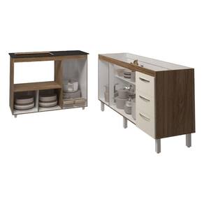 Características do Kit Montado: Largura total: 262 cm Profundidade: 50 cm Altura: 85,5 cm (com tampo do balcão de cooktop)