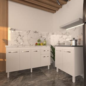 Características do Kit Montado: Largura: 208 cm (lado a lado os dois balcões) Profundidade: 53 cm (profundidade do balcão para cooktop com tampo; sem tampo, os balcões possuem 50 cm de profundidade) Altura: 85 cm (altura do balcão para cooktop com tampo; sem tampo, os balcões possuem 83,5 cm de altura) Os móveis não são acoplados; são montados individualmente e podem ser utilizados em diferentes locais.