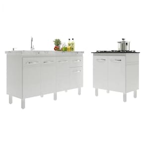 Balcão Armário Gabinete Para Pia 138 Cm Camila E Balcão Para Cooktop 5 Bocas Fran Branco Deixe sua cozinha mais atraente e funcional com o Kit Balcão para Pia de 140 cm Camila e Balcão para Cooktop Fran 5 Bocas. Este conjunto combina elegância e praticidade, com materiais de alta qualidade, pintura UV e um acabamento impecável. É a peça que faltava para transformar sua cozinha em um ambiente especial! Garanta o seu! Características do Balcão de Pia Camila 138 cm: Altura com pés: 83,5 cm Altura sem pés: 67 cm Largura: 138 cm (Padrão para pia de 140 cm) Profundidade: 50 cm Material: MDP (Madeira de Média Densidade) Portas: 4 portas Gavetas: 1 gaveta Prateleiras: 1 prateleira Puxadores: 6 puxadores plásticos cromados Pés: 6 pés reguláveis de plástico Altura dos pés: 16,5 cm Regulagem dos pés: Somente para nivelamento (chega no máximo a 18 cm) Corrediças: Metálicas Indicação de uso: Cozinha Acompanha tampo: Não