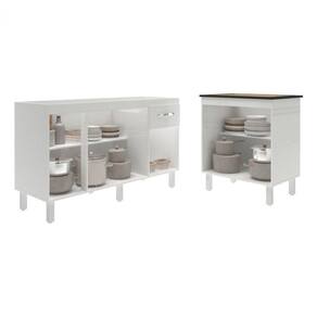 Características do Kit Montado: Largura: 208 cm (lado a lado os dois balcões) Profundidade: 53 cm (profundidade do balcão para cooktop com tampo; sem tampo, os balcões possuem 50 cm de profundidade) Altura: 85 cm (altura do balcão para cooktop com tampo; sem tampo, os balcões possuem 83,5 cm de altura) Os móveis são independentes, podem ser montados separadamente e utilizados em diferentes locais.