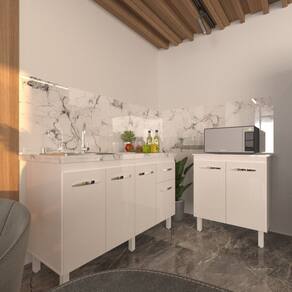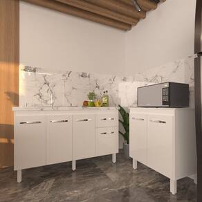 Transforme sua cozinha com o elegante Kit Balcão para Pia de 140 cm Camila e Balcão Multiuso para Micro-ondas e Forno Elétrico Jane. Com um design moderno e funcional, este conjunto é desenvolvido com materiais de alta qualidade, pintura UV e acabamento impecável, proporcionando beleza e praticidade ao seu espaço. Não perca a oportunidade de adquirir o seu!