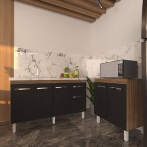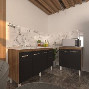Características do Kit Montado: Largura: 208 cm (lado a lado os dois balcões) Profundidade: 53 cm (profundidade do balcão para cooktop com tampo; sem tampo, os balcões possuem 50 cm de profundidade) Altura: 85 cm (altura do balcão para cooktop com tampo; sem tampo, os balcões possuem 83,5 cm de altura) Os móveis são independentes e podem ser montados e utilizados em diferentes locais.