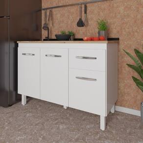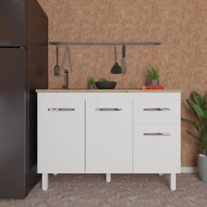 Balcão Armário Gabinete Para Pia de Cozinha 118 cm Aline 3 Portas e 1 Gaveta Branco
