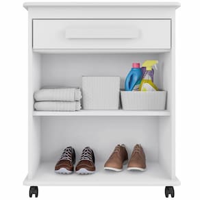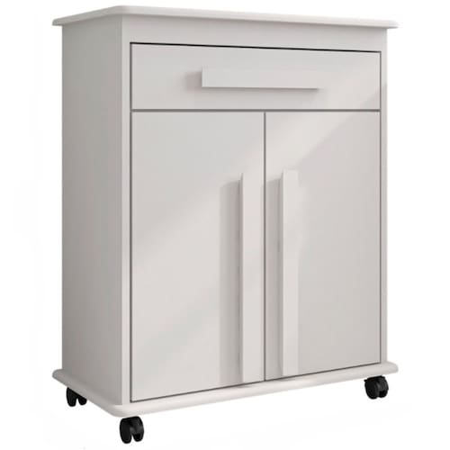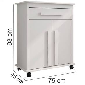 Estrutura: MDPAcabamento: Pintura U.V, com acabamento foscoPorta: Sim, 02 portas de abir/fechar, com dobradiças metálicasPrateleira: Sim, 01 prateleira internaPuxador: Sim, em MDFGaveta: Sim, 01 gaveta com corrediças telescópicaPés: Sim, 04 rodízios para melhor mobilidade do móvel no dia a diaDimensões do produto montado: