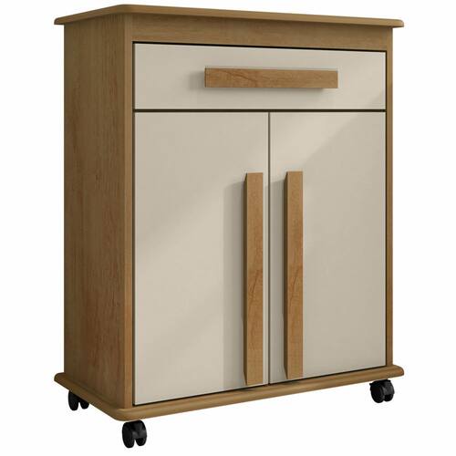 Estrutura: MDPAcabamento: Pintura U.V, com acabamento foscoPorta: Sim, 02 portas de abir/fechar, com dobradiças metálicasPrateleira: Sim, 01 prateleira internaPuxador: Sim, em MDFGaveta: Sim, 01 gaveta com corrediças telescópicaPés: Sim, 04 rodízios para melhor mobilidade do móvel no dia a diaDimensões do produto montado: