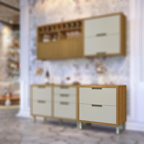Praticidade e facilidade são os principais pontos do Balcão Imperatriz. Feito em 100% MDF nas cores Freijó com Off White. Possui 1 Porta e 1 Gaveta. Complementando sua cozinha e trazendo versatilidade para organizar sua cozinha com encanto!