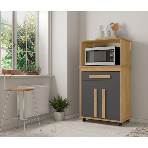 AS IMAGENS SÃO MERAMENTE ILUSTRATIVAS E PODEM SOFRER VARIAÇÕES DE COR E PEQUENOS DETALHES DE ACORDO COM O SEU MONITOR, ILUMINAÇÃO DO AMBIENTE E ATÉ MESMO A SUA PERCEPÇÃO VISUAL.BalcÃo ArmÃrio Multiuso Toronto 2 Portas 1 Gaveta Cinamomo/grafite