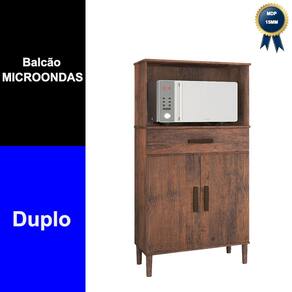 Além de ser um balcão e suporte para microondas e forno, este móvel também pode ser utilizado como um armário para armazenamento de utensílios e alimentos.