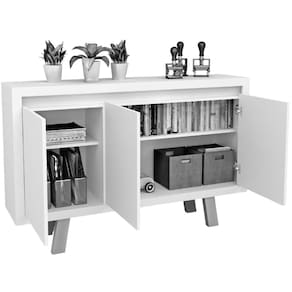 Balcão Armário para Escritório 3 Portas em MDP - Branco