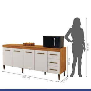 Preparar aquela receita especial vai ficar muito mais prático com a presença do Balcão Atenas. Além de oferecer nichos de tamanho ideal para acomodar panelas, produtos de mercearia e até eletrodomésticos, ele também conta com gavetas para guardar talheres, panos de prato e utensílios indispensáveis na hora de cozinhar - o tampo também é uma ajuda e tanto para picar alimentos ou apoiar itens de decoração! Por fora, a estrutura básica e cor leve são ótimas para ajudar a compor o espaço gourmet dos sonhos já que harmonizam bem com outras tonalidades e acessórios que usar para criar um cantinho com a sua personalidade. Daí é só combiná-lo com armários aéreos ou paneleiros e aproveitar as vantagens de ter tudo fácil de alcançar e bem organizado. Suporta Granito: Não Acabamento da Prateleira: Pintura Texturizada UV Escala de Brilho da Prateleira: Semi-Brilho Acabamento da Gaveta: Pintura UV Escala de Brilho da Gaveta: Semi-Brilho Material do Puxador da Gaveta: MDF Acabamento da Porta: Pintura UV Escala de Brilho da Porta: Semi-Brilho Material do Puxador da Porta: MDF Acabamento: Pintura Texturizada UV Acabamento dos Pés: Liso Acompanha Tampo: Sim Altura dos Pés: 17 Ambiente Principal: Cozinha Balcão Acompanha Pia: Não Complexidade da Montagem: Baixa: pode ser montado por uma pessoa sozinha Cor: Marrom/Off White Cor do Pés: Marrom Cor do Produto: Marrom/Off White Cor Flex: Cor Interna: Branco Escala de Brilho: Semi-Brilho Gaveta com Chave: Não Informações Complementares: Itens Inclusos: 1 Balcão, Kit Ferragens e Manual de Montagem. Linha ou Coleção: Manual de Especificação Técnica: Manual de Montagem e Instalação: https://cdn2.madeiramadeira.com.br/atributo/kaiki-moveis/1026216-balcAo-atenas-4-pts.pdf Material da Gaveta: MDP Material da Grade: Material da Porta: MDP Material da Prateleira: MDP Material do Tampo: MDP Material dos Pés: Plástico Medida do Recorte para Cooktop: Medida do Tampo (L x C x E): 201cmx53cmx1,5cm Montagem Flex: Necessita Montagem: Sim Origem do Produto: Nacional Pés Reguláveis: Sim Peso: 61.8 Peso Máximo por Gaveta: 5 Peso Máximo por Prateleira: 20 Possui Grade: Possui Pés: 08 Possui Portas: 04 Possui recorte para Cooktop: Não Recomendações de Uso, Manutenção e Limpeza: Recomendamos que a limpeza seja feita apenas com pano umedecido. Rodízio com Trava: Não Sapatas Niveladoras: Não Sistema de Montagem: Parafusos Suporta Até (kg): 50 Tipo de Corrediça da Gaveta: Telescópica Tipo de Dobradiça/Corrediça da Porta: Simples Tipo de Madeira Maciça: Tipo de Madeira Maciça da Gaveta: Tipo de Madeira Maciça da Porta: Tipo de Madeira Maciça da Prateleira: Tipo de Madeira Maciça do Puxador da Gaveta: Tipo de Madeira Maciça do Puxador da Porta: Tipo de Madeira Maciça dos Pés: Tipo de Porta: Bater Tipo de Puxador da Gaveta: Externo Tipo de Puxador da Porta: Externo
