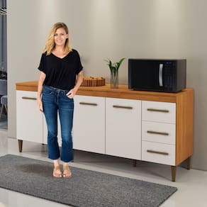Balcão Atenas 4 Portas E 3 Gavetas Kaiki Moveis Nature/off White