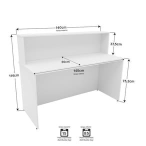 - Laterais e fundo em 15mm de espessura. Material da Estrutura: MDP Acabamento: Acetinado Acompanha Manual de Instalação: Sim Acompanha Tampo: Sim Altura: 114 Ambiente Principal: Escritório Complexidade da Montagem: Baixa: pode ser montado por uma pessoa sozinha Cor: Branco Cor da Base: Branco Cor do Produto: Branco Cor do Tampo: Branco Cor Interna: Branco Cor Predominante: Branco Dobrável: Não Escala de Brilho: Semi-Brilho Espessura do Tampo: 30 Estilo: Minimalista Formato: Retangular Itens Inclusos: Produto + manual e kit montagem Largura: 140 Linha ou Coleção: Office Manual de Montagem e Instalação: https://product-hub-prd.madeiramadeira.com.br/864945/documents/50f01110-f98d-4765-918c-633d54e6f374alcaodeatendimento1200x600.pdf Material do Tampo: MDP Material Principal: MDP Montagem Flex: Não Necessita Montagem: Sim Origem do Produto: Nacional Pés com Regulagem de Altura: Não Peso: 41 Possui Gavetas: Não Possui Grade: Não Possui Painel: Não Possui Passa Cabos: Não Possui Pés: Não Possui Porta Objetos: Não Possui Portas: Não Possui Prateleiras: Não Possui Rodízio: Não Possui suporte para CPU: Não Possui Suporte para Teclado: Não Possui Vidro: Não Profundidade: 60 Recomendações de Uso, Manutenção e Limpeza: Limpeza com pano úmido, sem produtos químicos Sapatas Niveladoras: Sim Sistema de Montagem: Parafusos, cavilha e minifix Suporta Até (kg): 50 Suporta Granito: Não Tema da Estampa: Sem Estampa Ean: 7909903388082