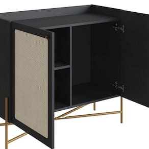 Balcão Bar Buffet 2 Portas Oslo Artesano 93 Cm (larg) Mdp Nero Palha Sintética Bege Pé Metal Dourado