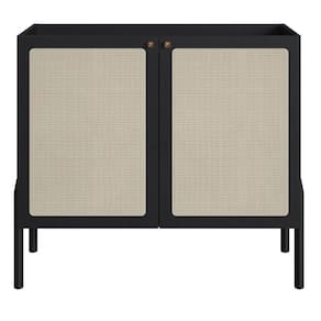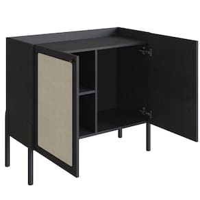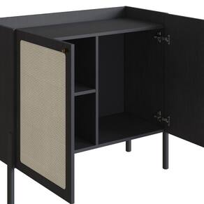 Balcão Bar Buffet 2 Portas Oslo Artesano 93 Cm (largura) Mdp Nero Palha Sintética Bege Pé Madeira