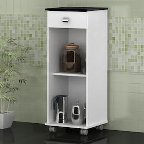 Balcao Bianca Branco Tampo Preto Filtro O Balcão Bianca possui 1 gaveta com corrediças metálicas, 1 porta com prateleira interna para armazenamento de itens diversos e rodízios para uma melhor movimentação e facilidade de limpeza. Pode ser utilizado para áreas de cozinha e lavanderia. Esse móvel é ideal para pessoas que gostam de organização. Produzido em MDP conta com um design compacto e sofisticado irá harmonizar com seu ambiente de casa. Além disso, o produto possui uma fácil montagem.Material: mdpLargura cm : 38,7Altura cm : 100Profundidade cm : 37