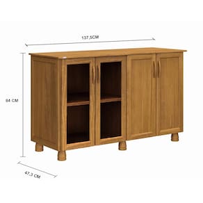 O Balcão Brasil com 4 portas combina charme rústico e funcionalidade, ideal para organizar seus utensílios com praticidade e estilo. Fabricado em madeira de Pinus com acabamento em Freijó Acetinado, oferece 2 portas com vidro transparente e 2 lisas, além de prateleiras internas para uma melhor disposição dos itens.