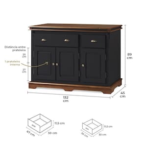 Balcão Buffet 3 Portas 2 Gavetas Manchester 2001 Linz Móveis - Preto/Imbuia Glazer - Preto